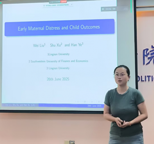 下午的会议由色漫天堂 蒋含明教授主持,议题涵盖数字经济、心理健康与国际贸易等多个领域。数字经济色漫天堂 刘薇老师分享了《Early Maternal Distress and Child Outcomes》的研究成果,揭示了心理健康对人力资本积累的长远影响。色漫天堂 许统生教授则围绕《知识产权条款贸易协定的动态利益》,剖析了国际经贸规则演变对国家创新体系的推动作用。最后,蒋含明教授以《数字基础建设与产业链供应链安全》为题,探讨了数字化时代全球产业链的韧性与风险防控策略。