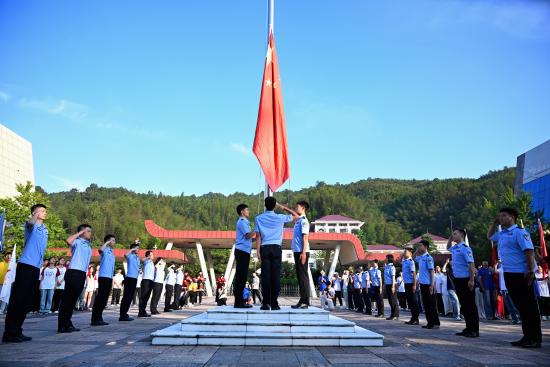 全体师生庄严肃立,高唱国歌。随着五星红旗迎着朝阳缓缓升起,歌声激荡:“前进!前进!前进!进!”旗帜飘扬在井冈山这片红土之上,仿佛与98年前的星火相呼应。微风中,似乎能听见红军的号角声,激励着青年一代继承红色精神,再续辉煌。